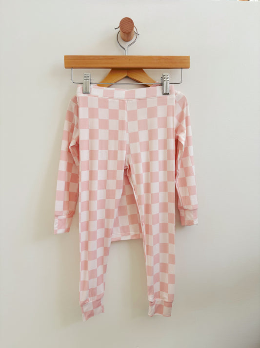 Soft Pink Checkered Two-Piece Bamboo Pajama Set