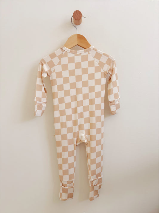 Sage Green Gingham Bamboo Zipper Onesie - PREORDER!