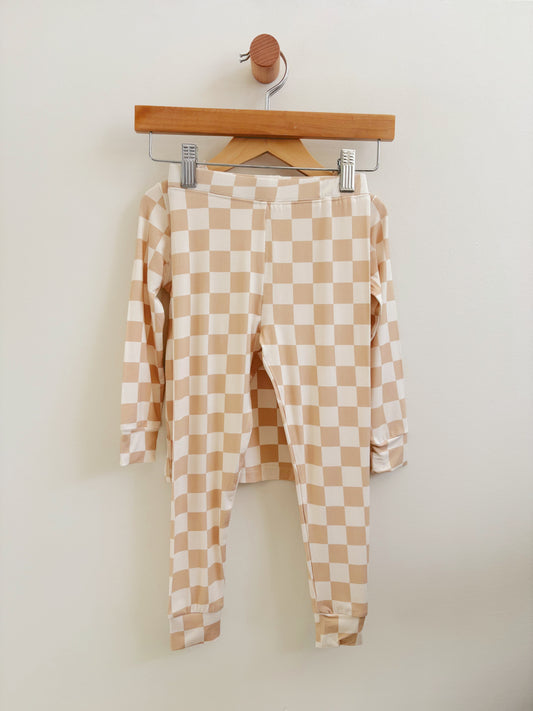 Tan Checkered Two-Piece Bamboo Pajama Set